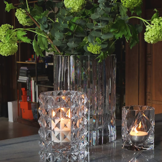 The Hurricane Crystal Stud is the latest piece in our crystal collection, crafted from pure Bohemian crystal. Handmade and hand-cut, it dazzles with faceted details that catch the light beautifully. With its bold shape, it works just as well as a vase or candleholder as it does a striking decorative piece on its own.