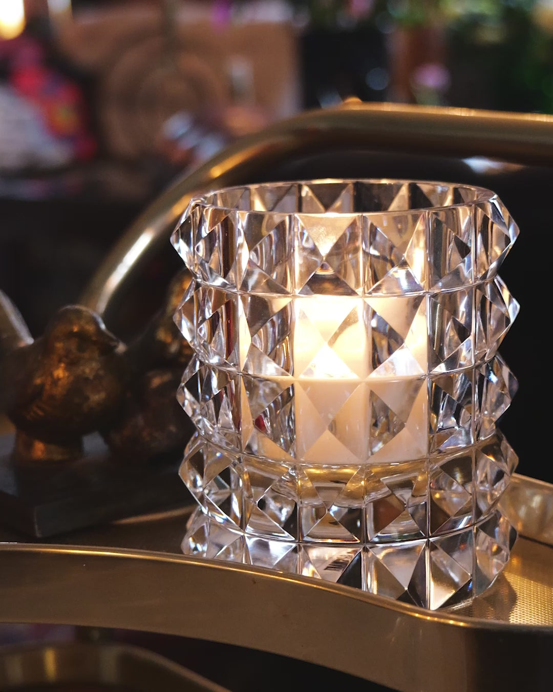 The Hurricane Crystal Stud is the latest piece in our crystal collection, crafted from pure Bohemian crystal. Handmade and hand-cut, it dazzles with faceted details that catch the light beautifully. With its bold shape, it works just as well as a vase or candleholder as it does a striking decorative piece on its own.