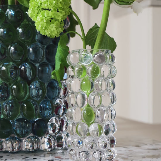 Hurricane Boule Mini ist eine wunderschöne kleine Vase, die in Böhmen, der Heimat der weltbesten Glasbläser, mundgeblasen wird. Die Blasen, die in einer gusseisernen Form hergestellt werden, verleihen Hurricane Boule sein eigenes, einzigartiges optisches Muster und ein luxuriöses, schweres Gefühl.