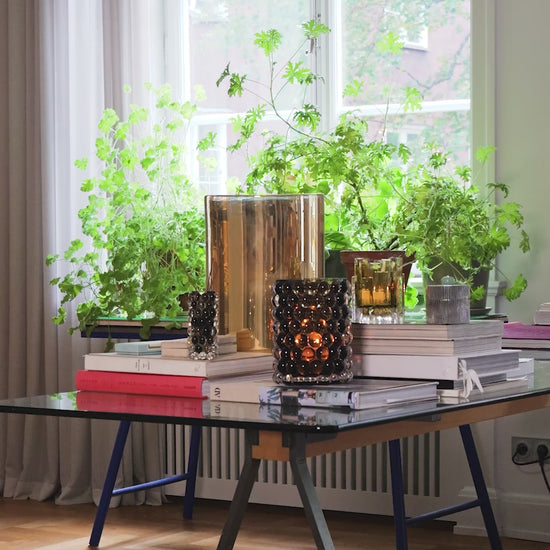 Hurricane Boule Mini ist eine wunderschöne kleine Vase, die in Böhmen, der Heimat der weltbesten Glasbläser, mundgeblasen wird. Die Blasen, die in einer gusseisernen Form hergestellt werden, verleihen Hurricane Boule sein eigenes, einzigartiges optisches Muster und ein luxuriöses, schweres Gefühl.
