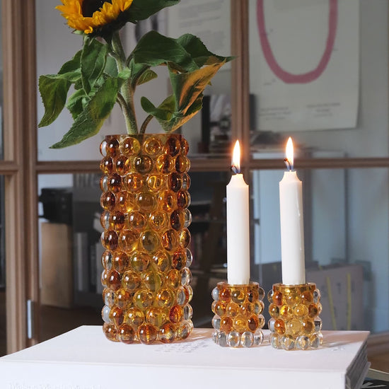 Boule Petite ist ein eleganter Kerzenhalter für freistehende Kerzen. Das Set besteht aus zwei wunderschönen Stücken, stilvoll verpackt in einer edlen Geschenkbox. Jeder Boule Petite ist mundgeblasen, mit einem Messinghalter, der sich anmutig im Glas befindet – eine perfekte Verbindung von Handwerkskunst und zeitlosem Design.