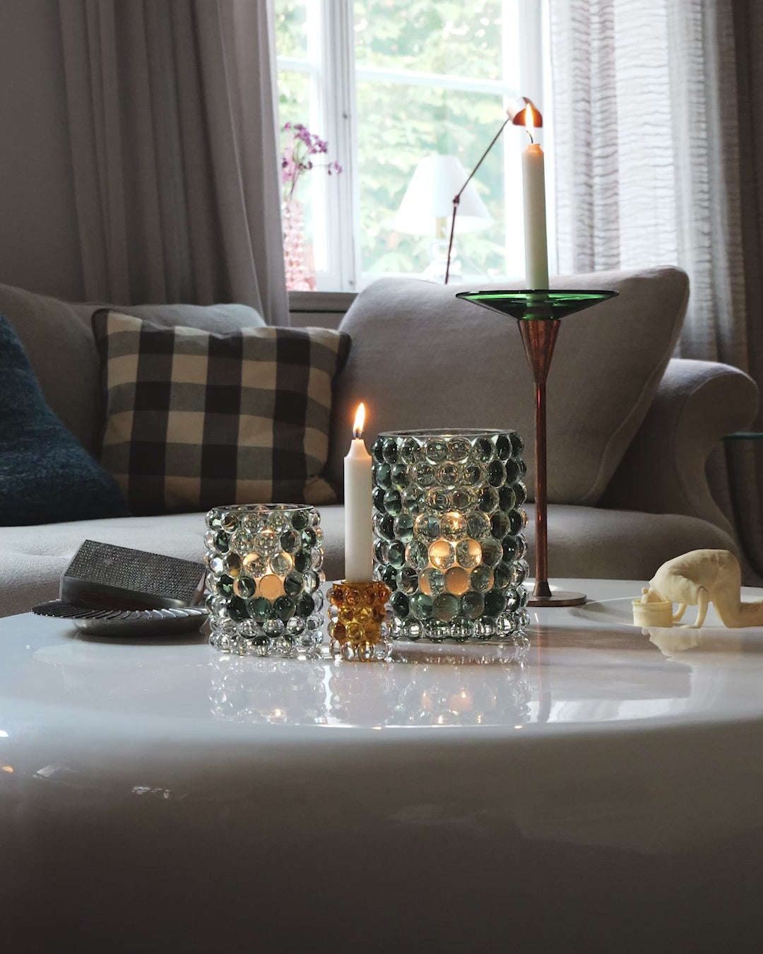 Die meisten Hurricane Boule sind für eine doppelte Nutzung konzipiert — ebenso elegant als Windlicht für Kerzen, als Vase für frische Blumen oder als eigenständiges skulpturales Objekt, das Licht in jedem Interieur einfängt und reflektiert.