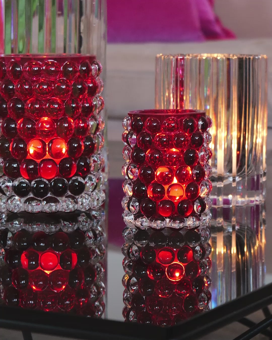 Most Hurricane Boule pieces are designed for dual use — equally elegant as a candle hurricane, a vase for fresh flowers, or as a standalone sculptural object that captures and reflects light within any interior.